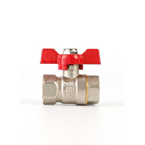 | Item: Ball Valve Size: 1/2" - 2" Brass material: CW617n Connection Type: Female G x Female G Handle Material: IRON / AL Handle Type: Lever Stem Type: Blowout Proof Stem Material: Brass Seat Material: PTFE Body Seal Material: PTFE |